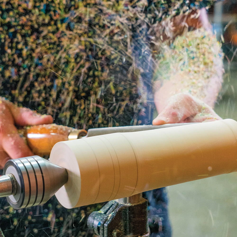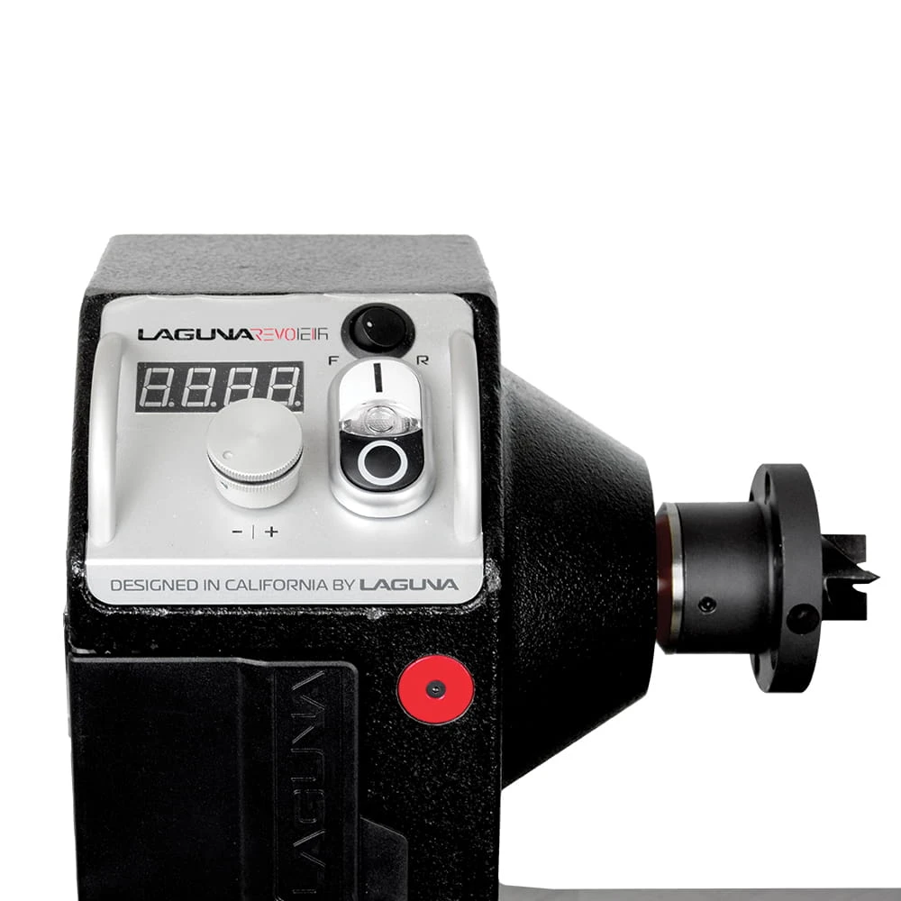 Kolejnym elementem, który z pewnością przyciągnie wzrok, jest ergonomicznie umieszczony panel sterowania wykonany z anodowanego aluminium z duraluminiowym regulatorem prędkości obrotowej. Tokarka pracuje z prędkościami 50-525, 325-1750, 650-3500 obrotów na minutę. Prędkość jest płynnie kontrolowana za pomocą duraluminiowego regulatora, a zmiana między trzema prędkościami jest rozwiązana za pomocą prostego mechanizmu dźwigniowego. Silnik tokarki został wyposażony w technologię, która gwarantuje wysoki moment obrotowy nawet przy niskich prędkościach.